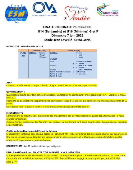 Le dimanche 07 juin 2026 Lieu : Stade Jean Léveillé Challans